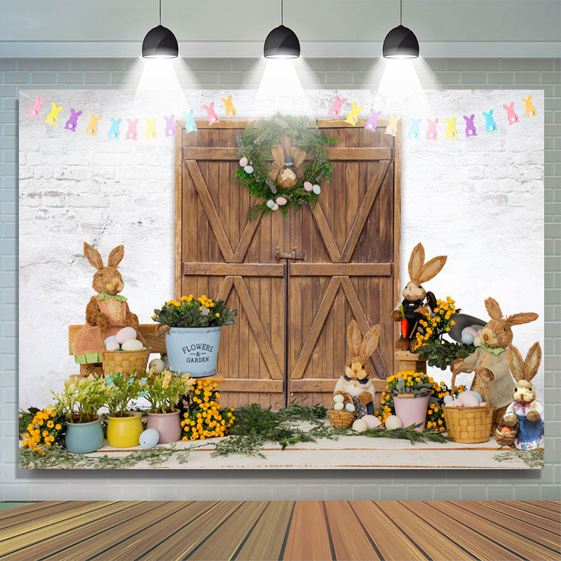 Holz Tür Blumen Glücklich Urlaub Ostern Hintergrund