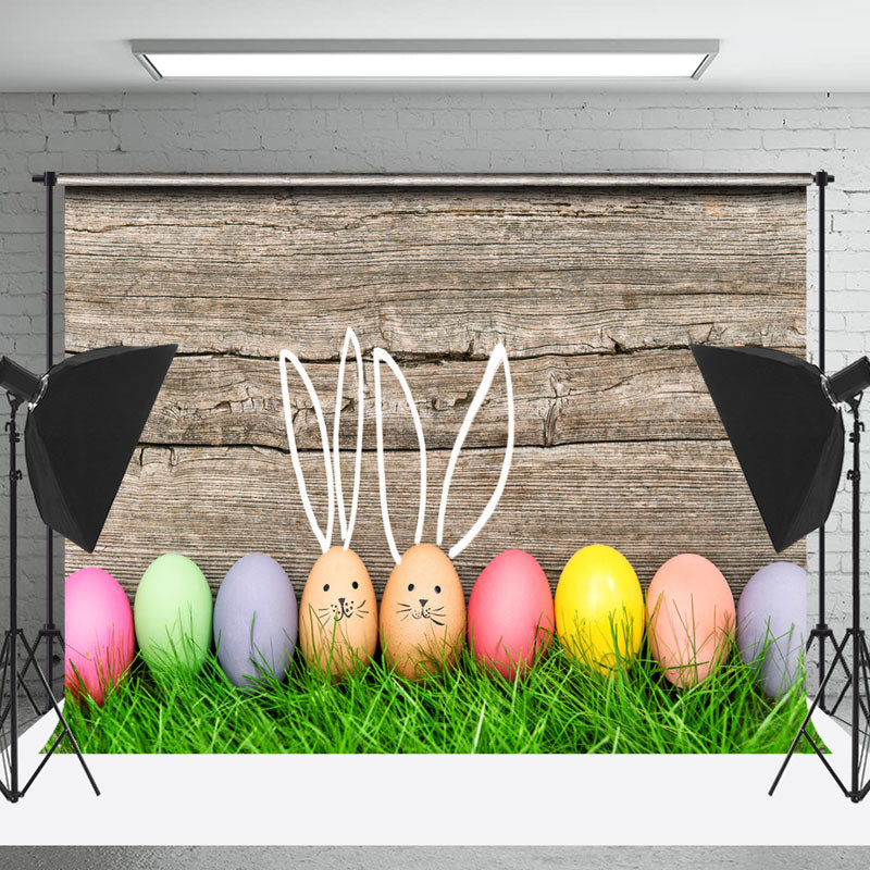Holz Wand Grün Gras Eier Ostern Hintergrund Für Foto