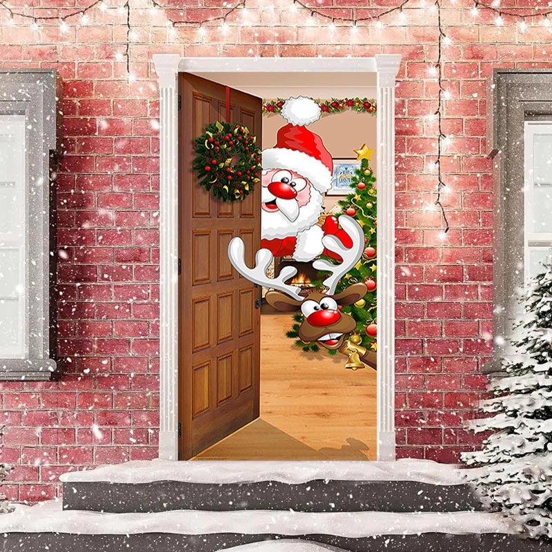 Holz Weihnachten Baum Weihnachtsmann Klaus Elch Weihnachten Tür Abdeckung