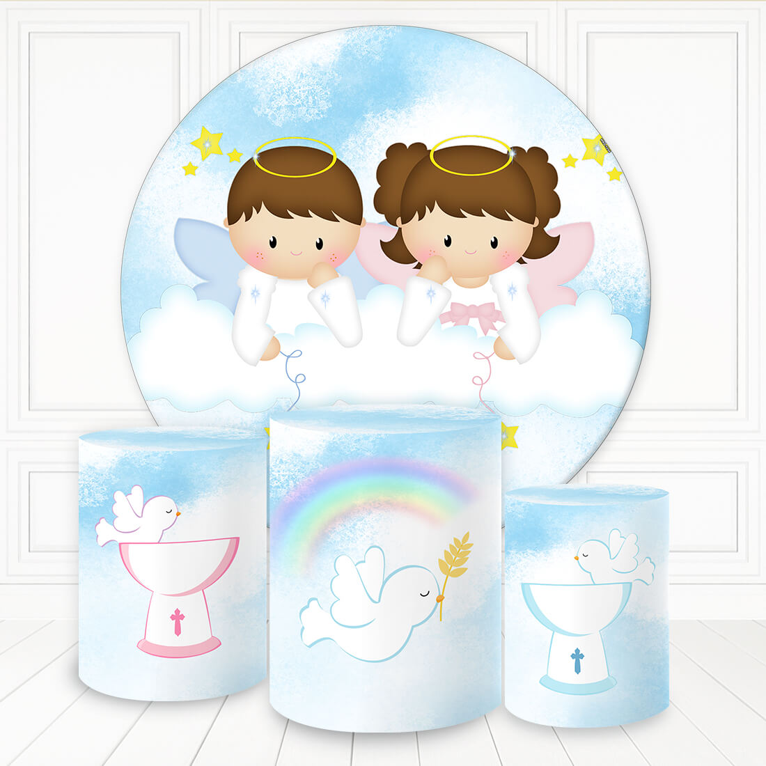 Junge Und Mädchen Engel Wolke Himmel Runden Baby Dusche Hintergrund Bausatz