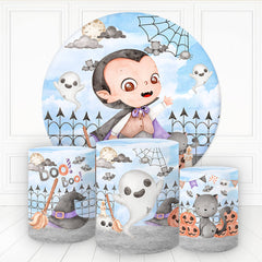 Junge Vampir Buh Magie Runden Hintergrund Bausatz Für Baby Dusche