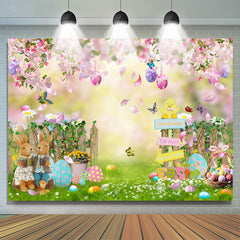 Kaninchen An Zaun Rosa Blumen Ostern Ei Party Hintergrund