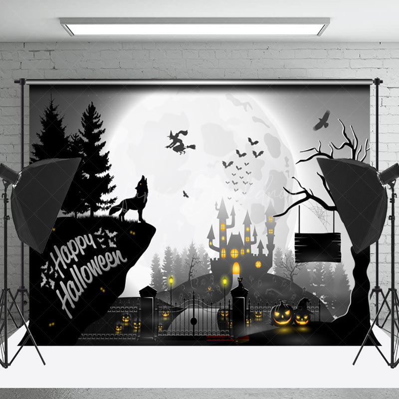 Karikatur Gruselig Schloss Wolf Hexe Halloween Hintergrund