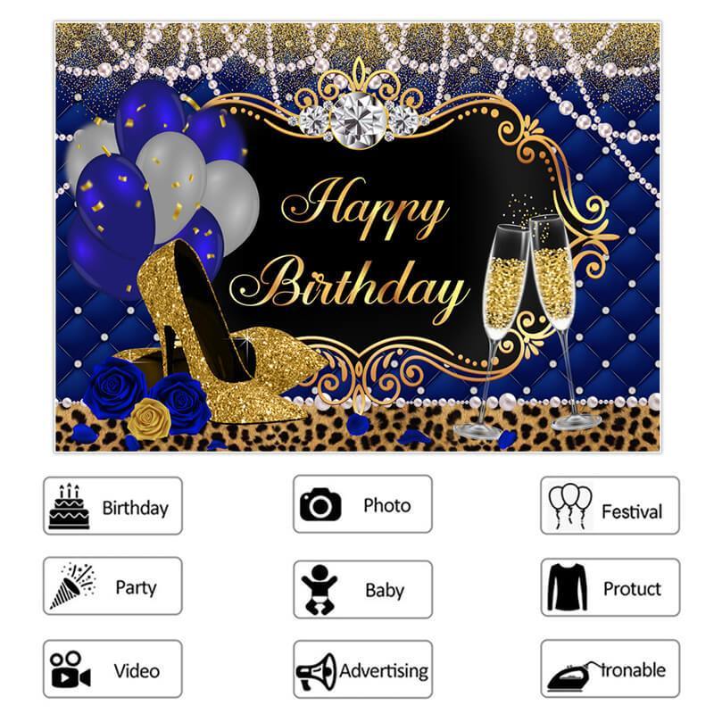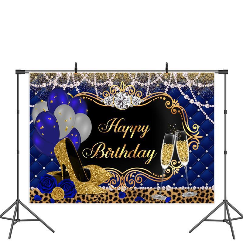 königlich Blau Gold Und Leopard Glücklich Geburtstag Hintergrund