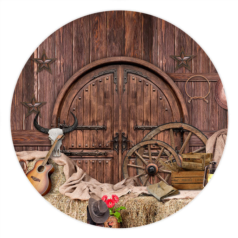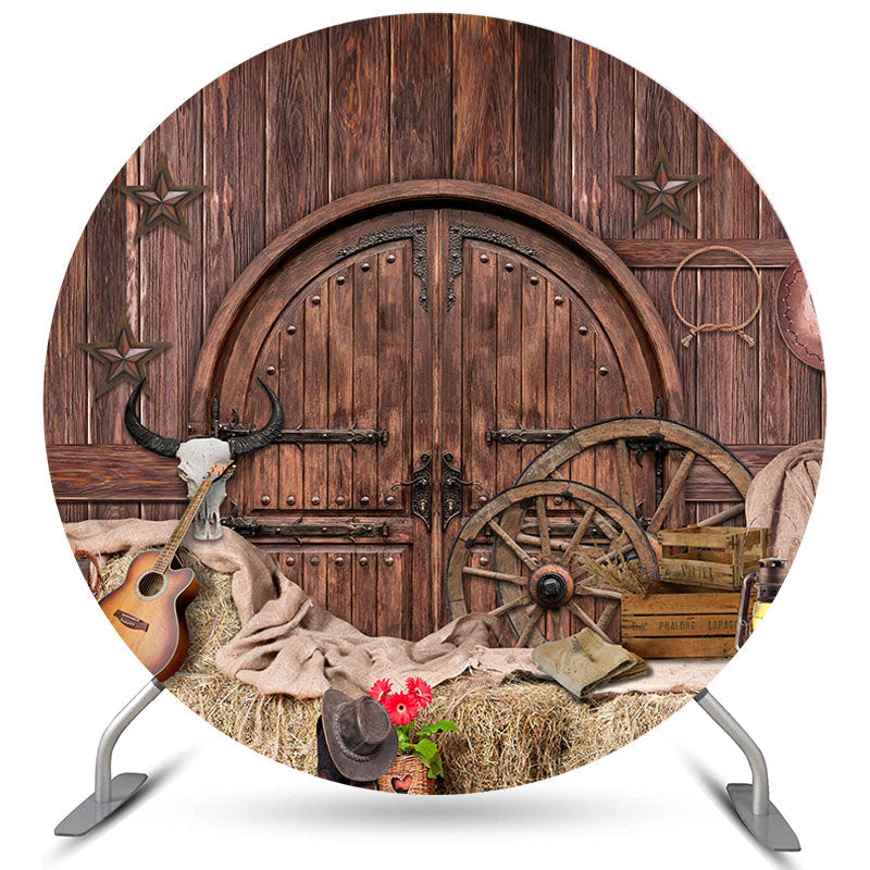 Kreis Braun Hölzern Und Western Cowboy Geburtstag Hintergrund