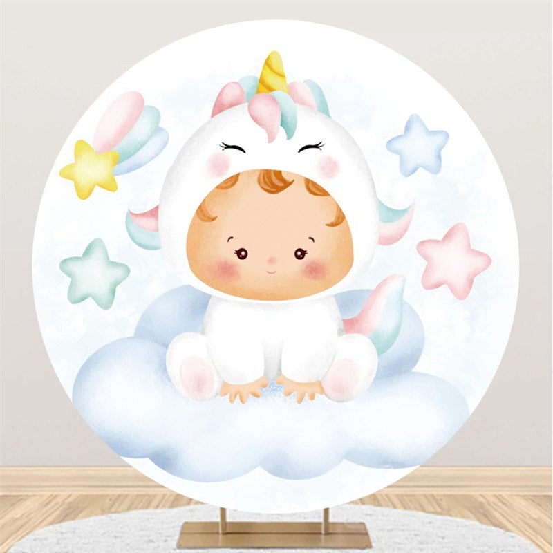 Kreis Wenig Stern Und Wolke Einhorn Baby Dusche Hintergrund