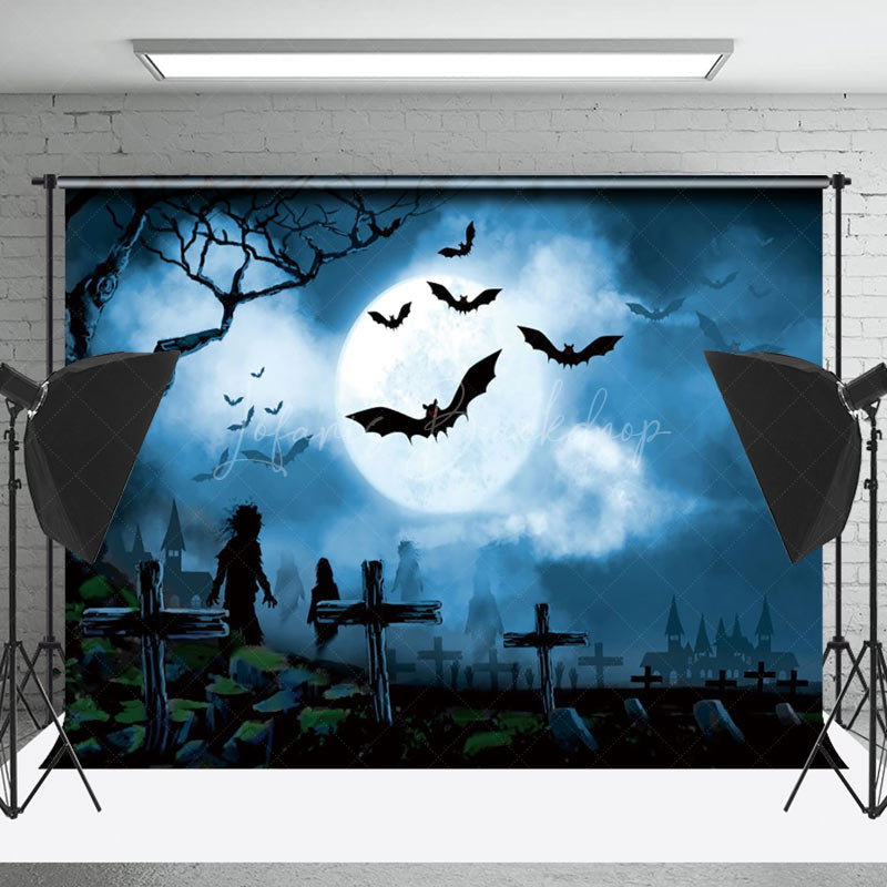Kreuzen Geist Mond Schläger Nebelig Halloween Hintergrund