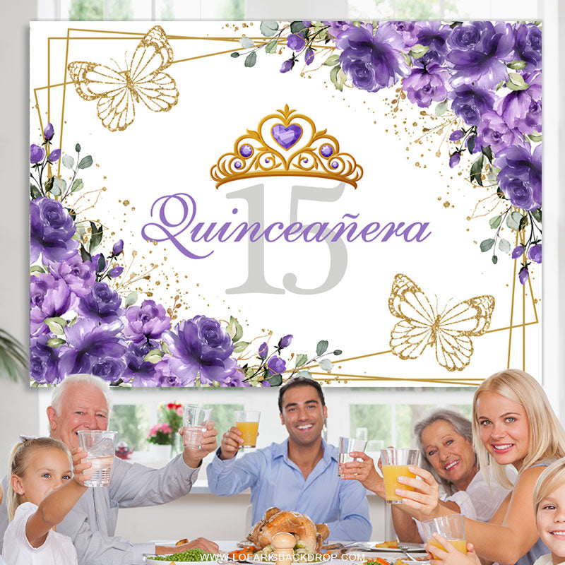 Krone Lila Gold Blumen 15 Geburtstag Hintergrund Für Mädchen