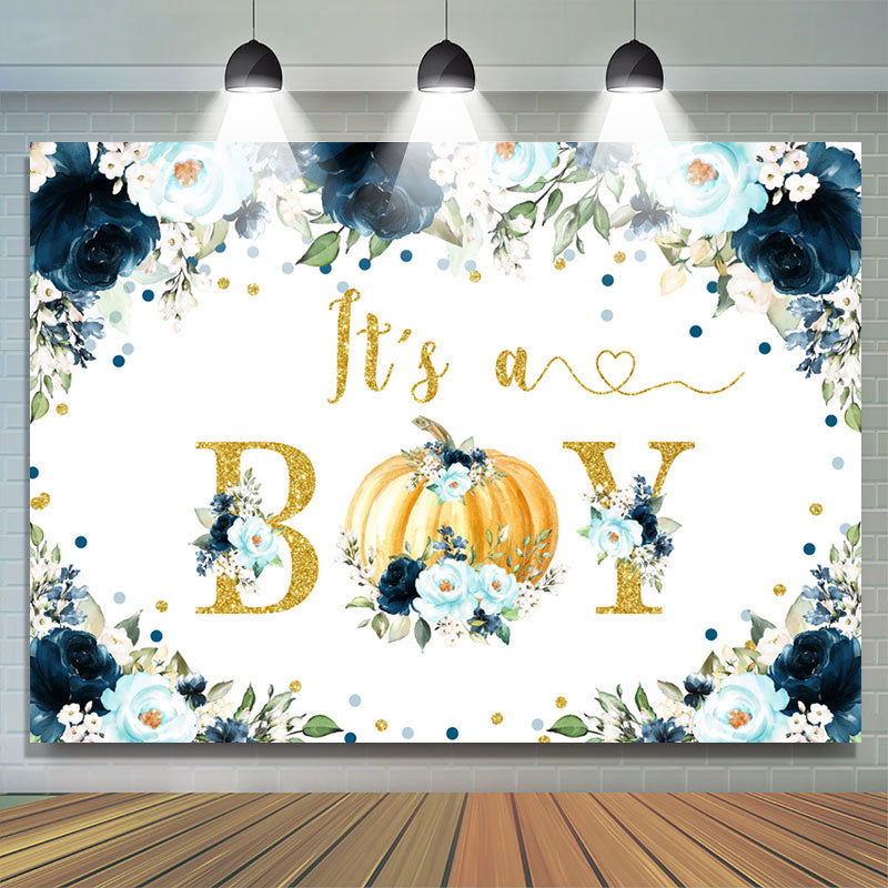 Kürbis Und Blumen Babydusche Hintergrund Für Junge