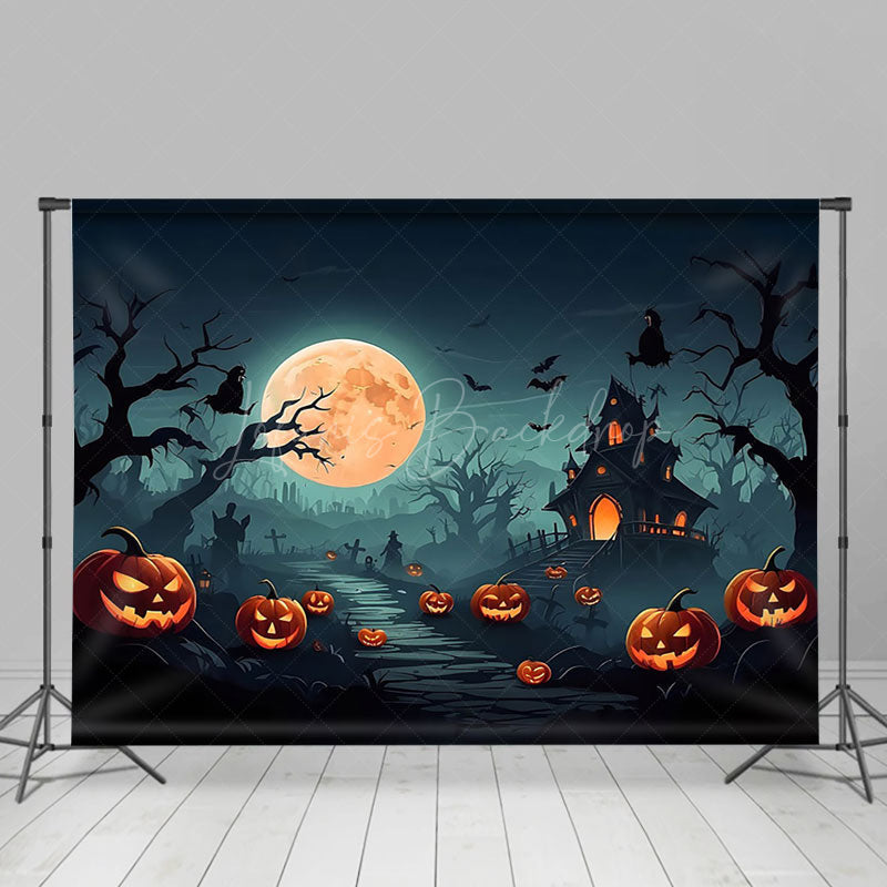 Land Straße Friedhof Herrenhaus Halloween Nacht Hintergrund
