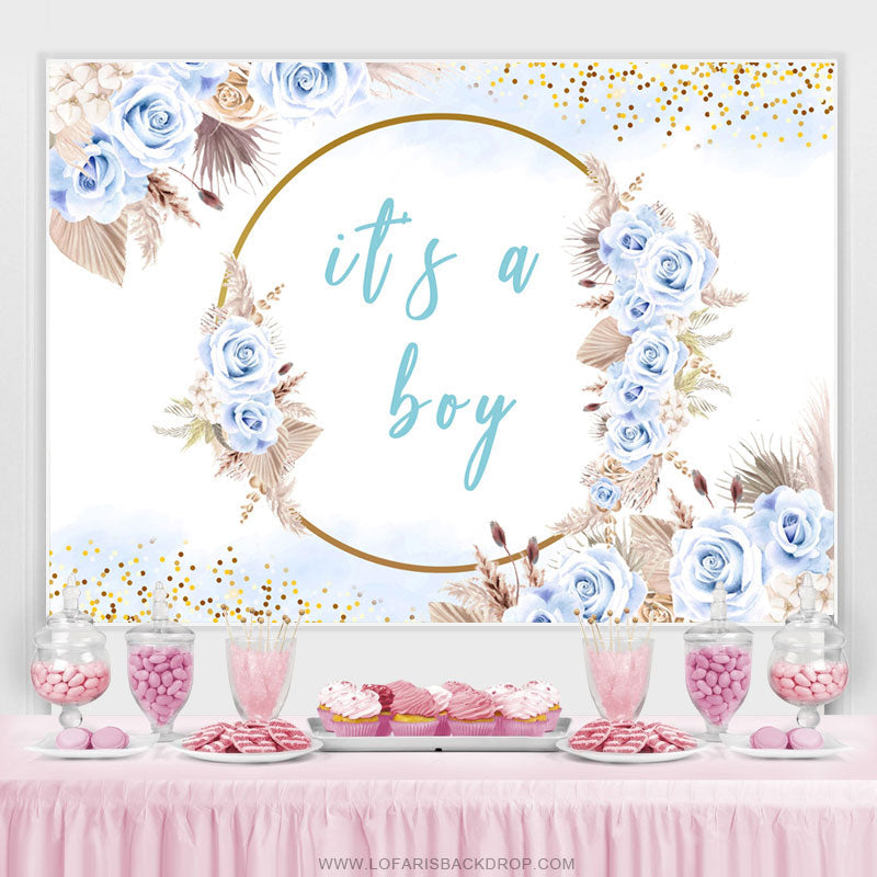 Licht Blau Blumen Es ist A Junge Babydusche Hintergrund