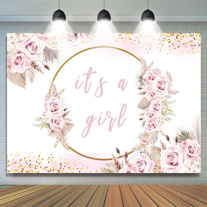 Licht Rosa Blumen Es ist A Mädchen Babydusche Hintergrund