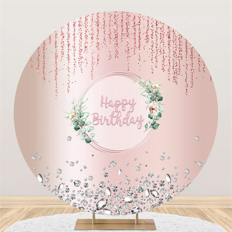 Licht Rosa Funkeln Grün Blätter Runden Geburtstag Hintergrund