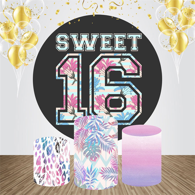 Lila Blumen Blatt Runden 16 Geburtstag Hintergrund Bausatz