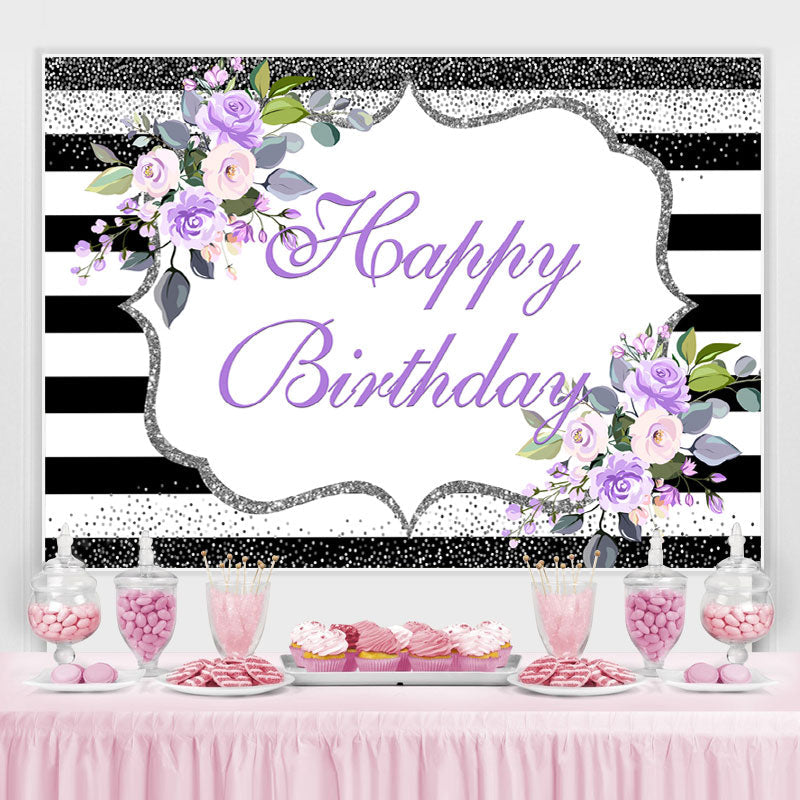 Lila Blumen Glücklich Geburtstag Funkeln Streifen Party Hintergrund
