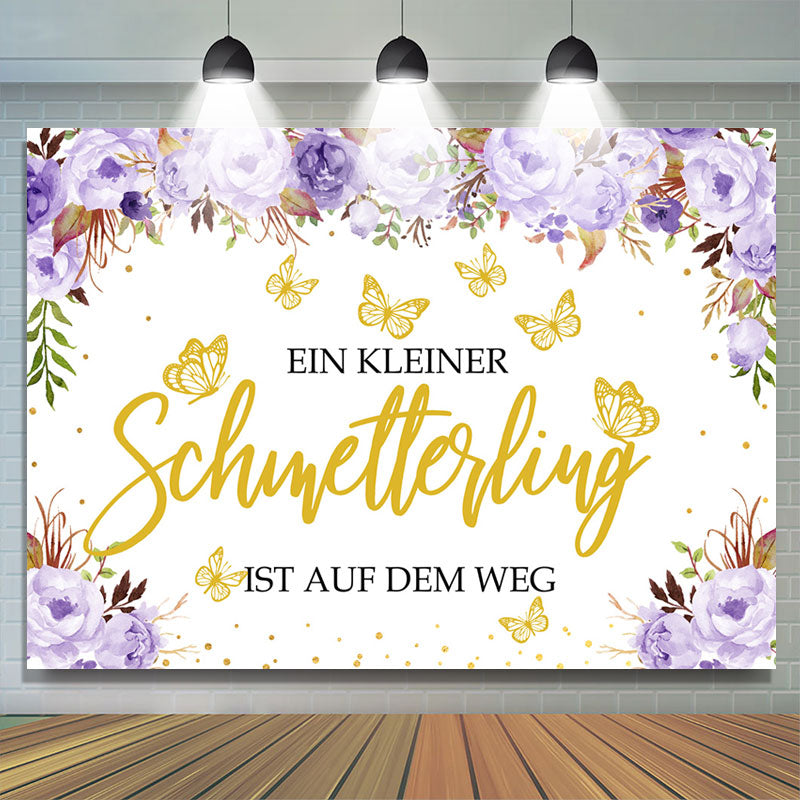 Lila Blumen Golden Schmetterling Baby Dusche Hintergrund