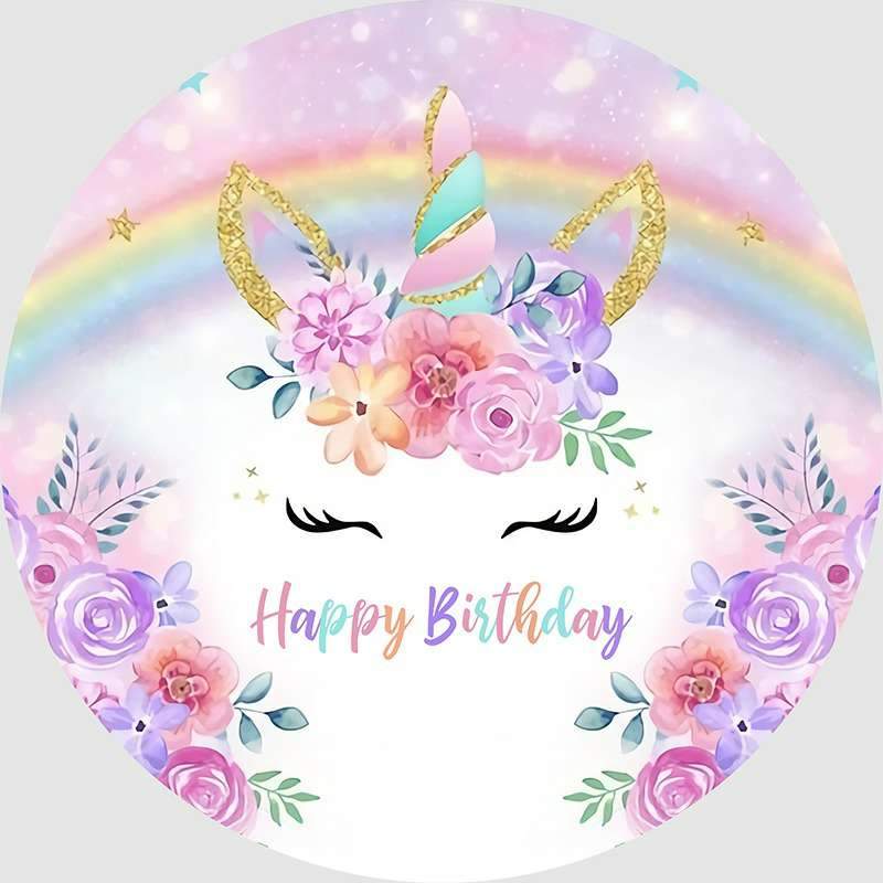 Lila Blumen Und Einhorn Kreis Glücklich Geburtstag Hintergrund