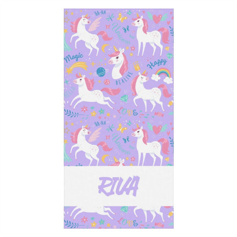 Lila Glücklich Einhorn Blumen Brauch Strand Handtuch