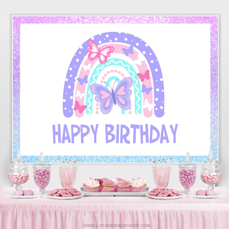 Lila Und Rosa Frühling Schmetterling Glücklich Geburtstag Hintergrund