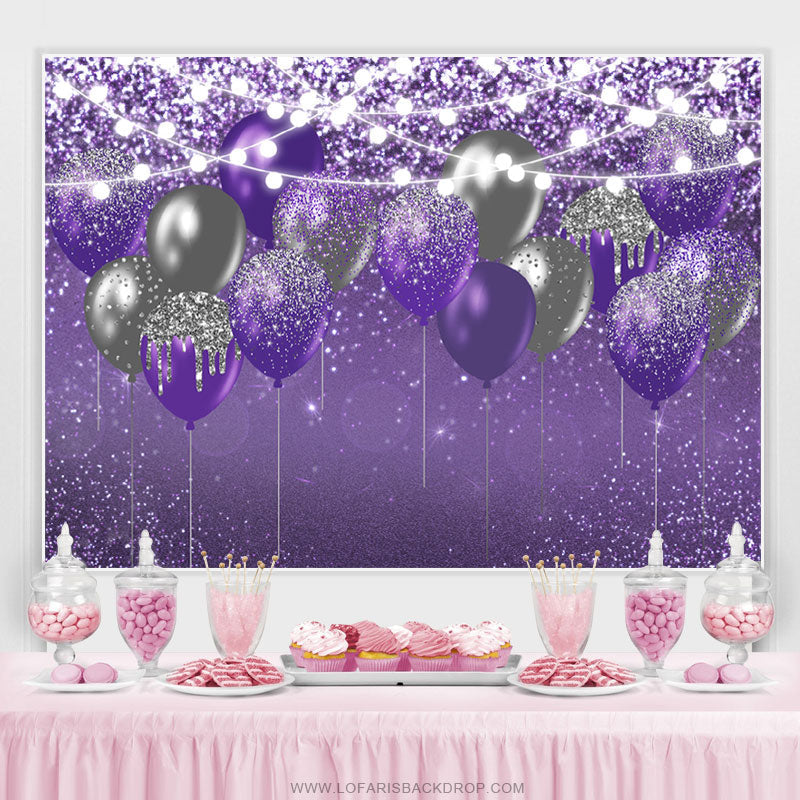 Lila Und Schwarz Bokeh Funkeln Luftballons Geburtstag Hintergrund