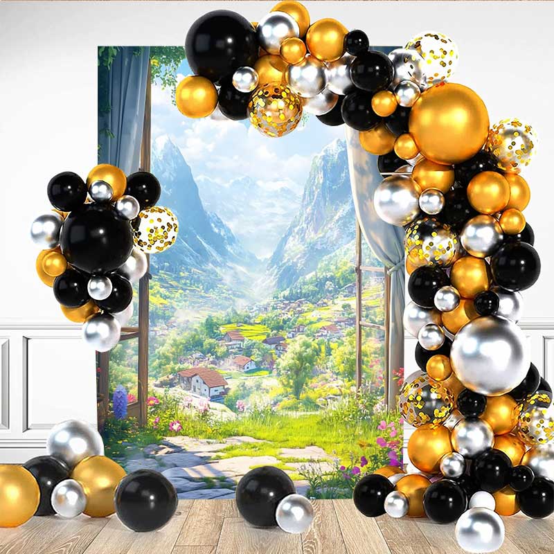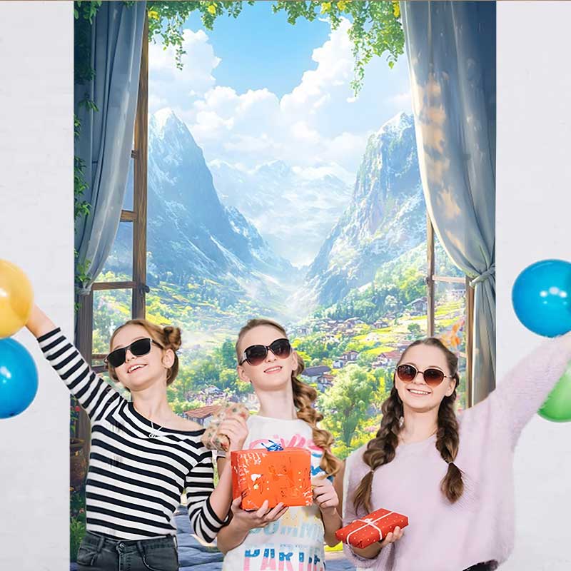 Lofaris Alpenblick Hintergrund Schneegipfel Blumenwiese Fenster