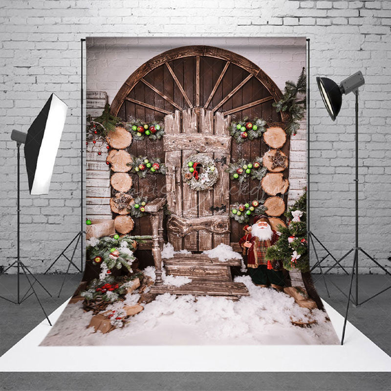 Lofaris Aus Holz Tür Weihnachten Schnee Szene Foto Hintergrund