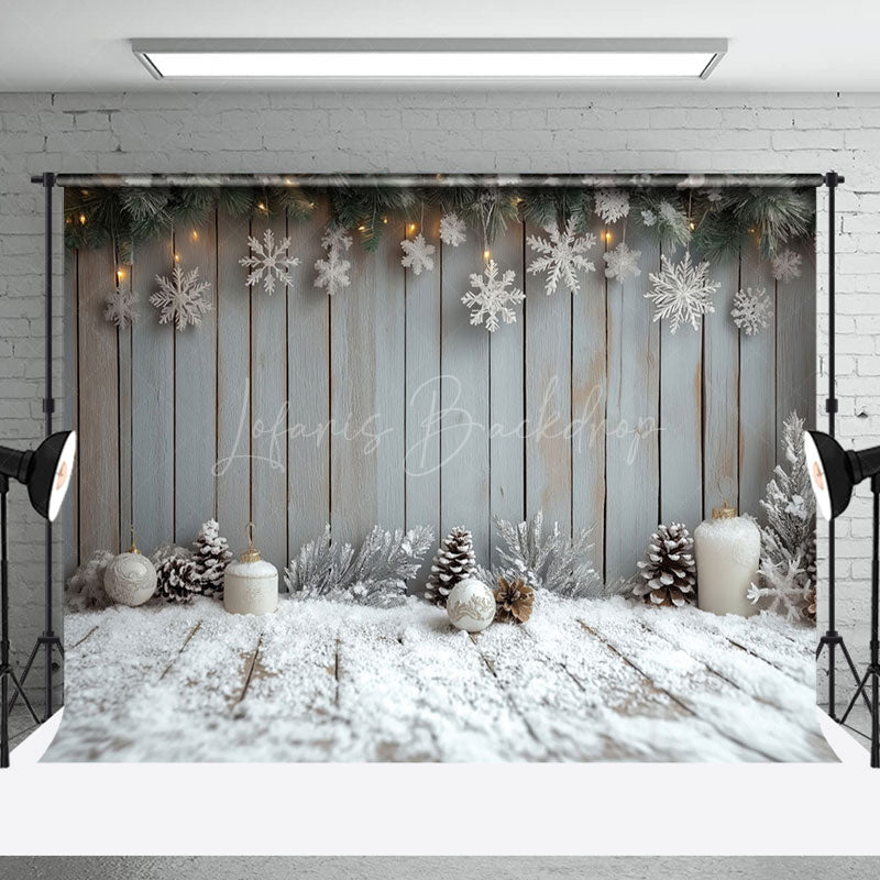 Lofaris Aus Holz Wand Schneeflocke Schneebedeckt Boden Weihnachten Hintergrund