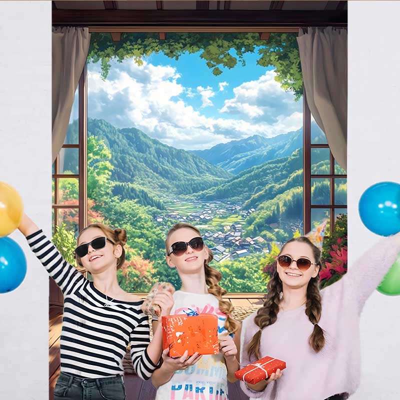 Lofaris Bergterrasse Hintergrund Webmatte Walddorf Aussicht