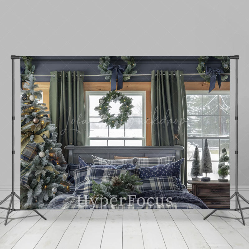 Lofaris Blau Plaid Bett Vorhang Fenster Weihnachten Hintergrund