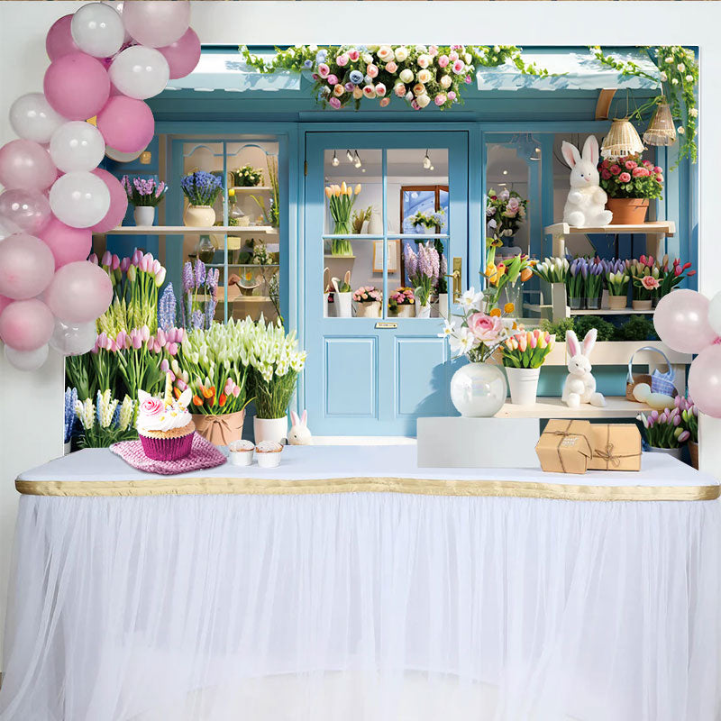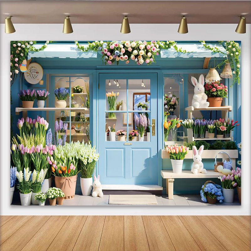 Lofaris Blumenladen Hintergrund Blaue Fassade & Osterhase Frühling