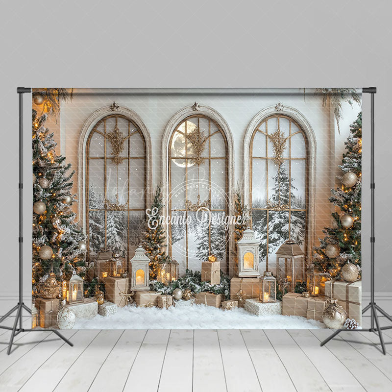 Lofaris Bogen Fenster Golden Bälle Dekoration Weihnachten Hintergrund