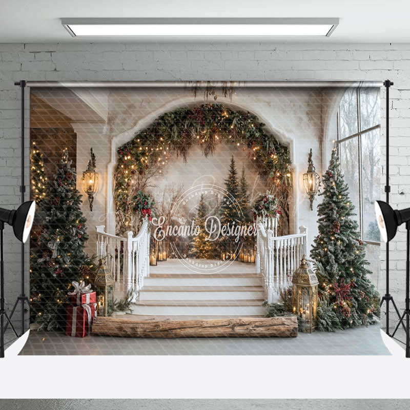 Lofaris Bogen Treppe Wandgemälde Weihnachten Fotografie Hintergrund