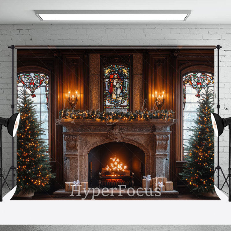 Lofaris Dunkel Licht Kamin Jahrgang Weihnachten Foto Hintergrund