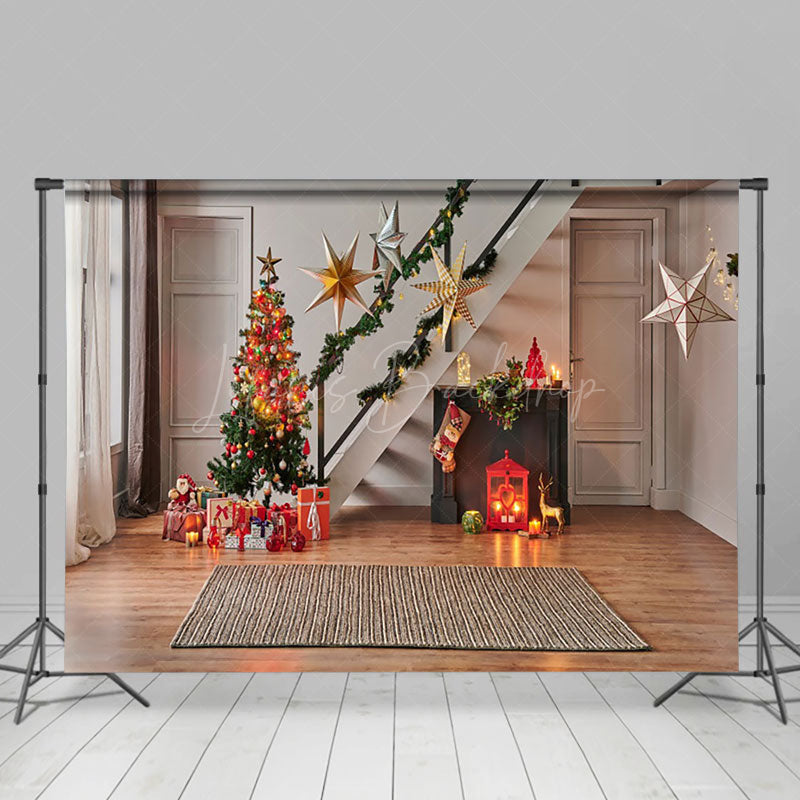 Lofaris Festlich Drinnen Treppe Weihnachten Baum Matte Hintergrund