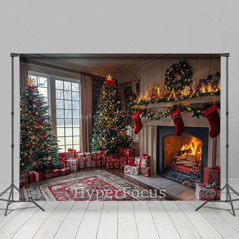 Lofaris Festlich Drinnen Zimmer Kamin Baum Weihnachten Hintergrund