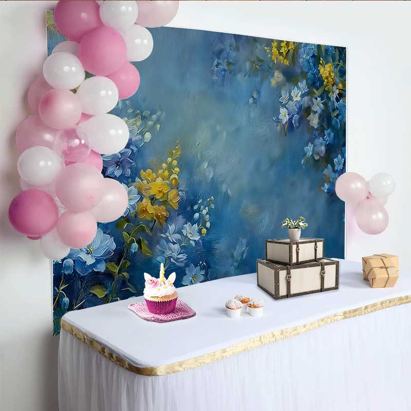 Lofaris Fotohintergrund Kunst Blau Gelb Blumen Ölgemälde Abstrakt