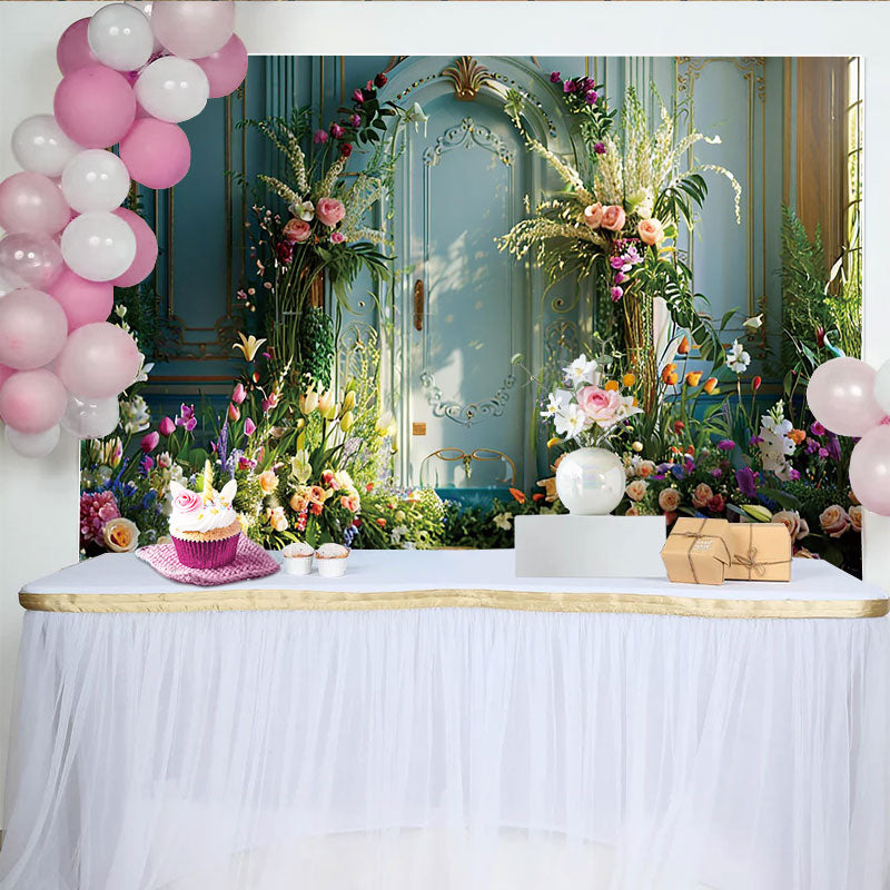 Lofaris Frühlingsgarten Villa Hintergrund Blaue Tür Blumen