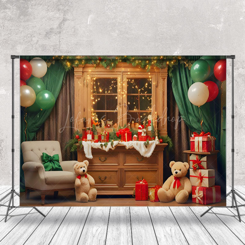 Lofaris Glocken Bären Retro Braun Vitrine Weihnachten Hintergrund