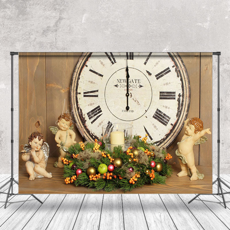 Lofaris Holz Uhr Wenig Engel Kirsche Kerze Weihnachten Hintergrund