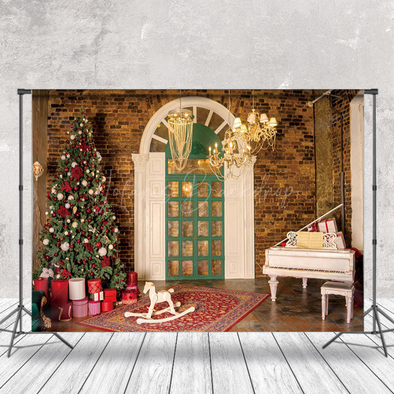 Lofaris Jahrgang Ziegel Wand Tür Baum Klavier Weihnachten Hintergrund