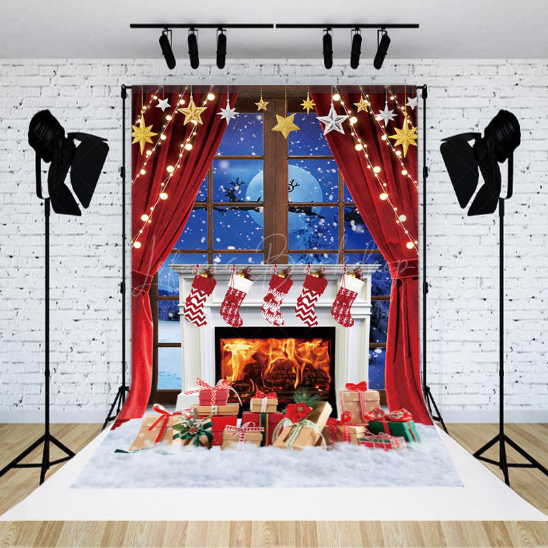 Lofaris Ren Drinnen Kamin Bei Nacht Weihnachten Hintergrund
