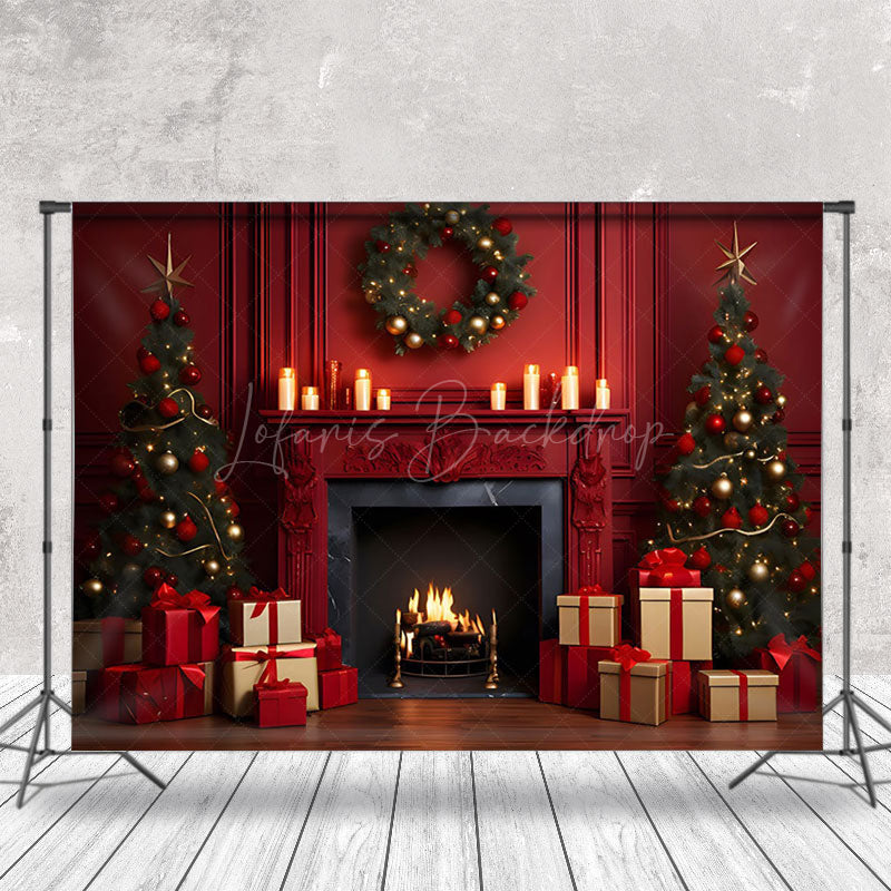 Lofaris Retro Rot Wand Kamin Fröhlich Weihnachten Hintergrund