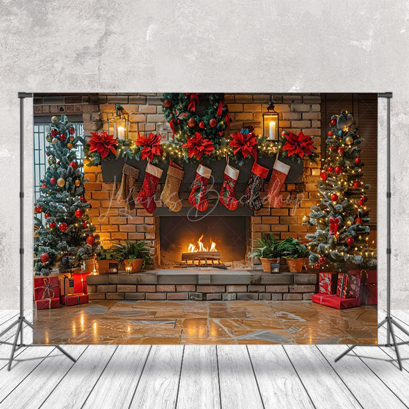 Lofaris Retro Ziegel Kamin Kerzenlicht Weihnachten Hintergrund