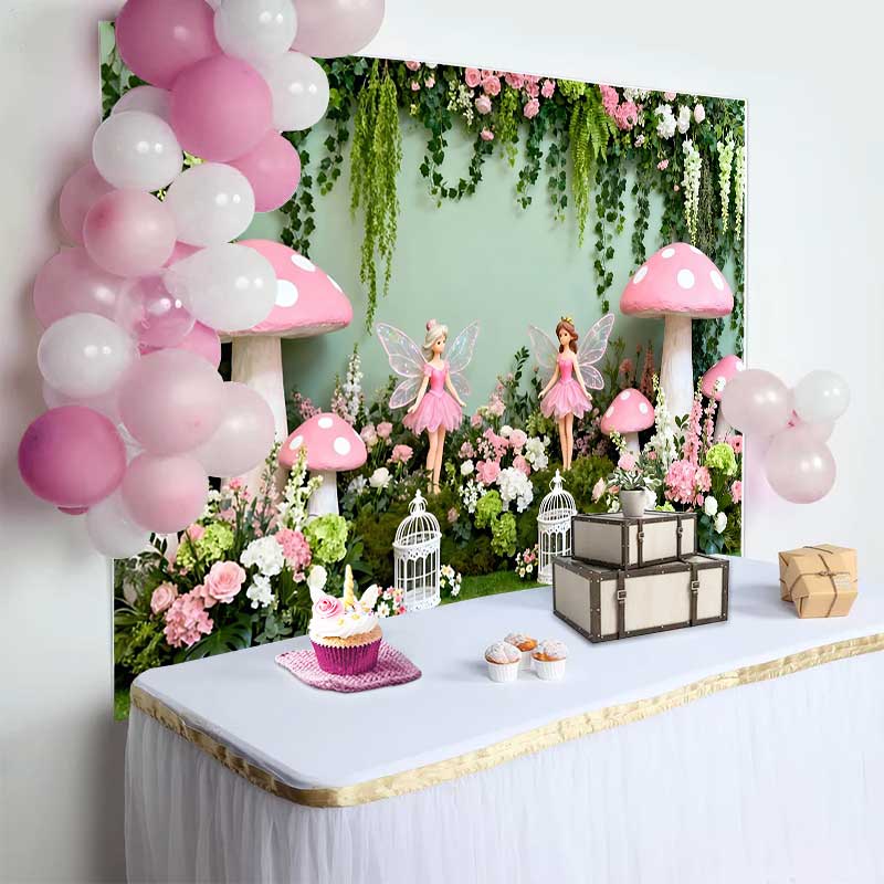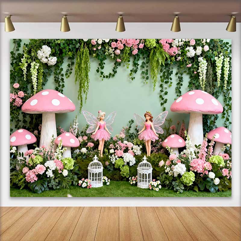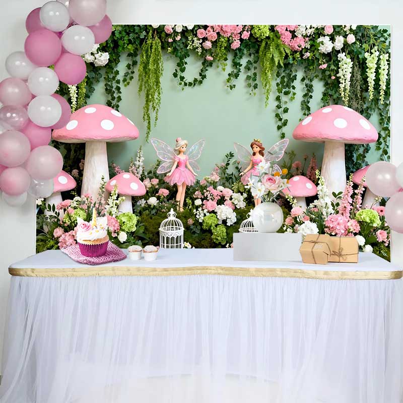 Lofaris Riesiger Pinker Pilz Feen Frühling Hintergrund Verwunschener Wald Blumen Mädchen