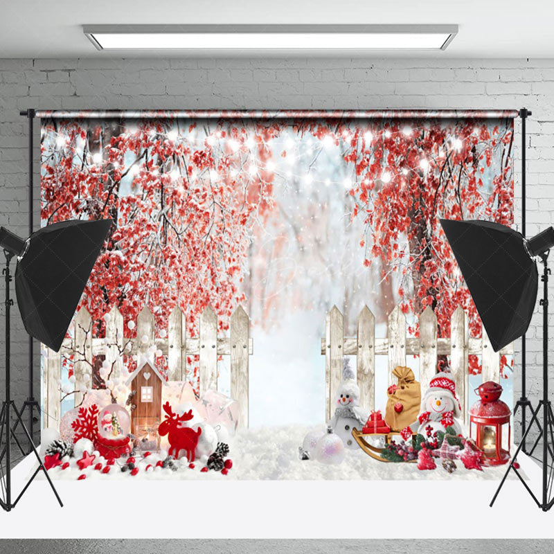 Lofaris Rot Blätter Schnee Wald Schneemann Weihnachten Hintergrund