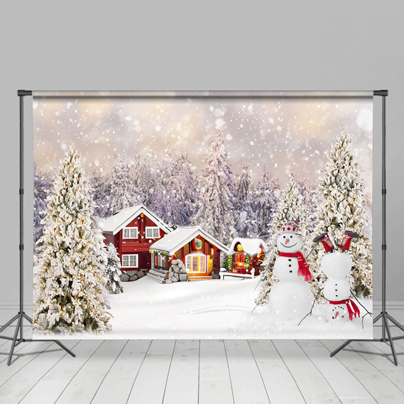 Lofaris Rot Kabine Schneemann Schneebedeckt Weihnachten Bäume Hintergrund