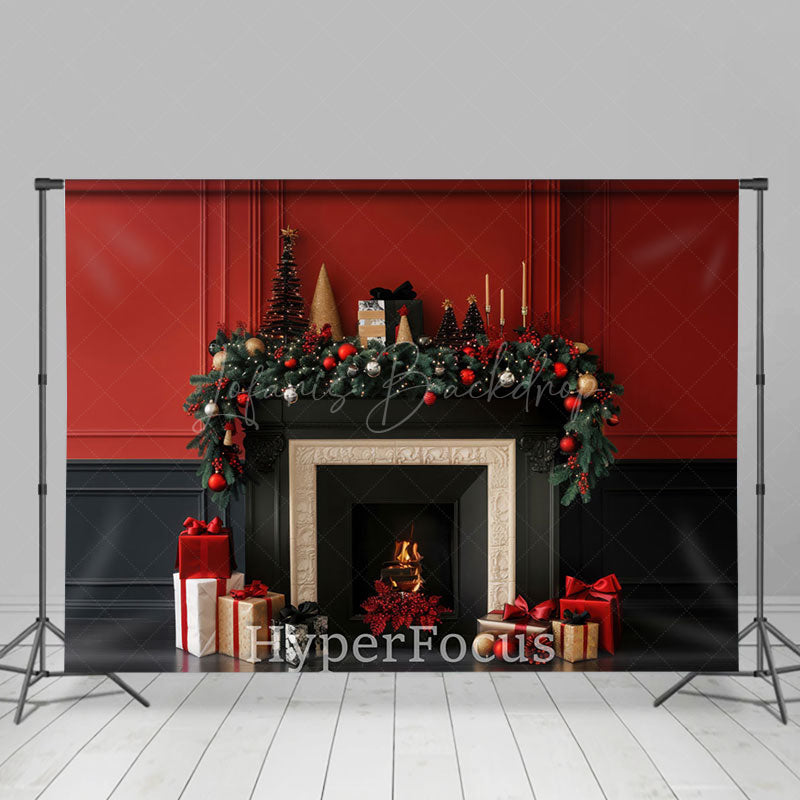 Lofaris Rot Schwarz Jahrgang Wand Kamin Weihnachten Hintergrund