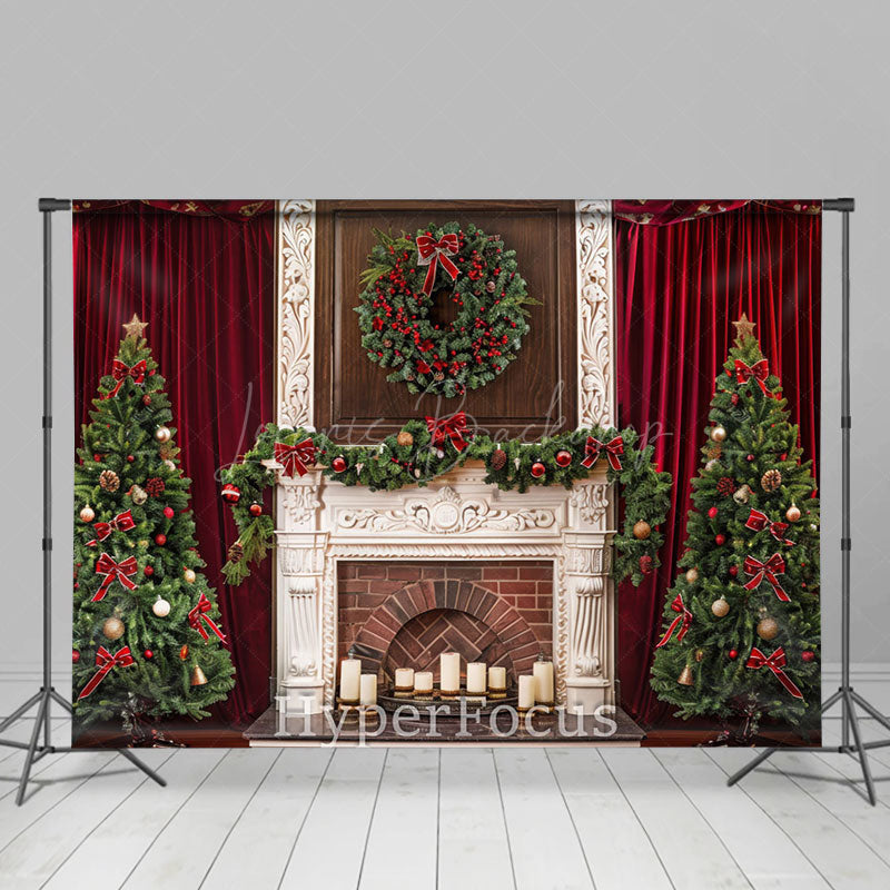 Lofaris Rot Vorhang Weiß Kamin Baum Weihnachten Hintergrund