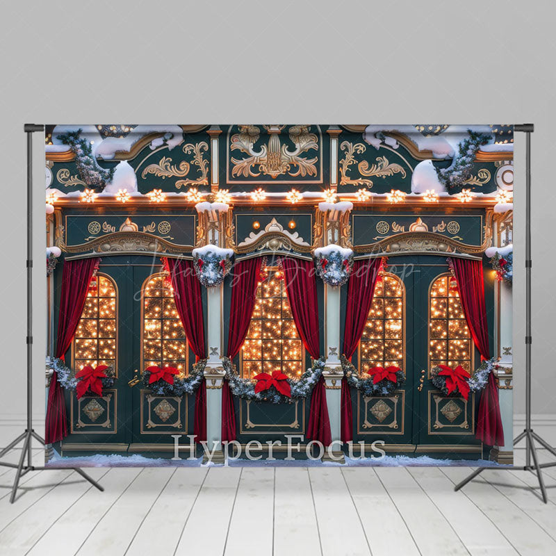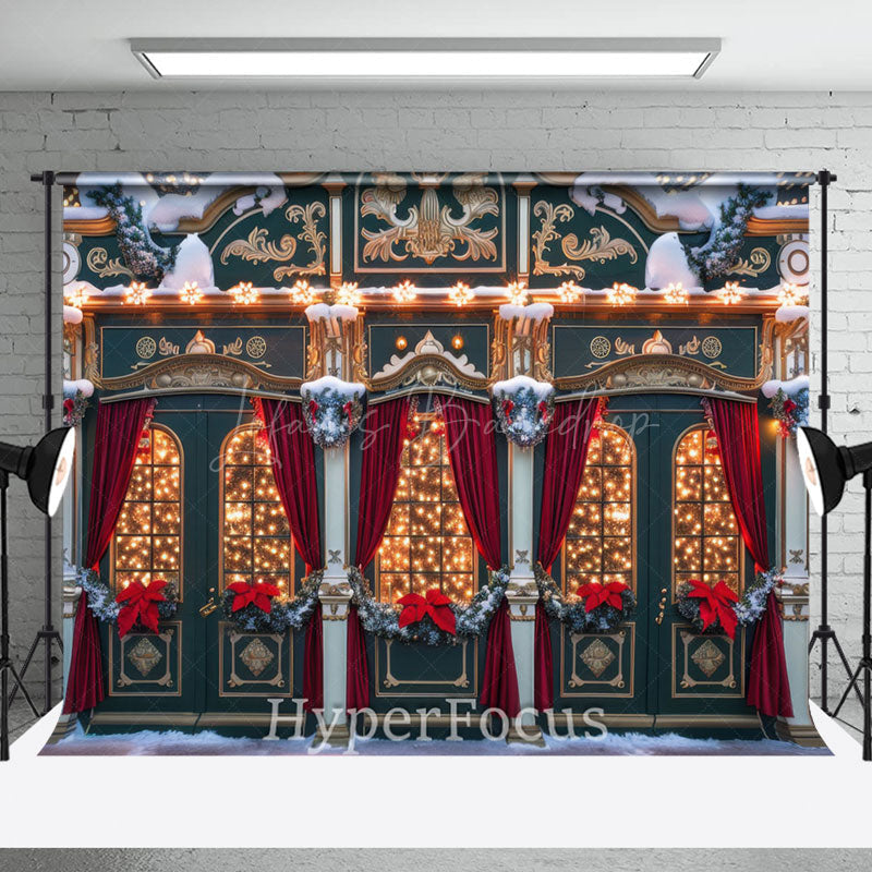 Lofaris Schneebedeckt Festlich Rot Grün Speichern Weihnachten Hintergrund