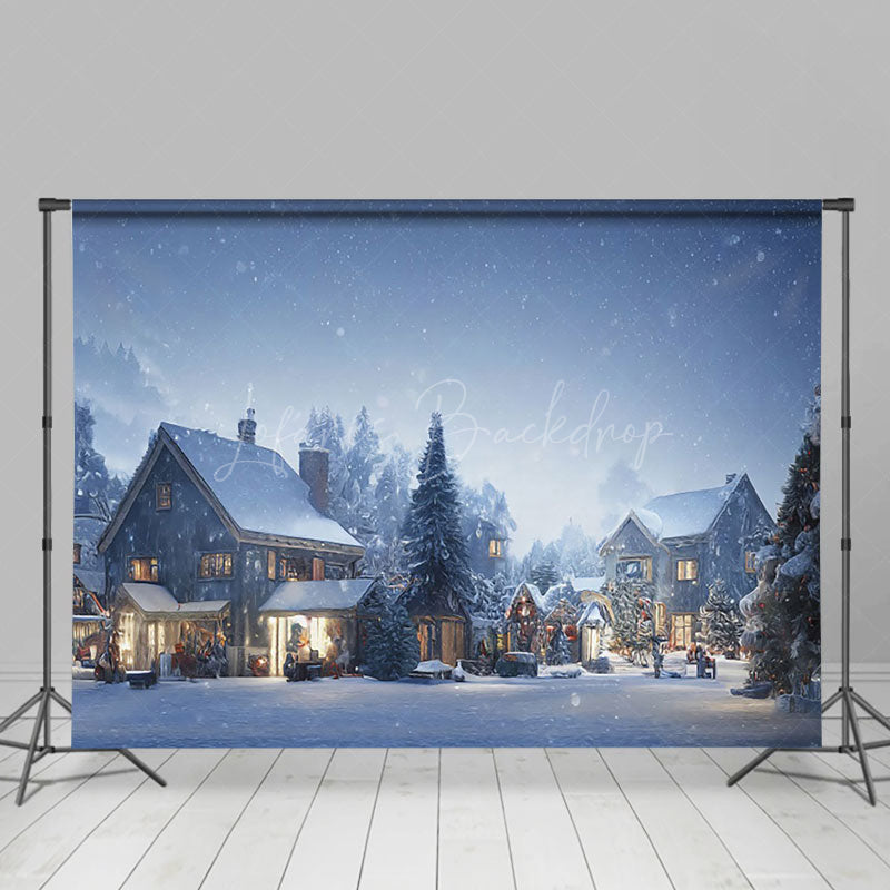 Lofaris Schneebedeckt Ländlich Stadt Nacht Festlich Weihnachten Hintergrund